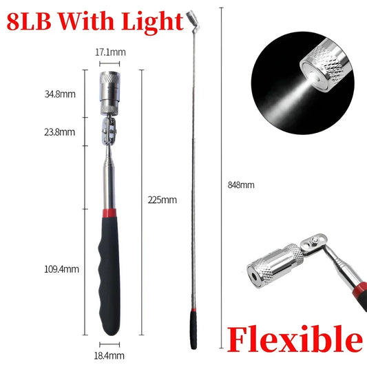 Telescopic Magnetic Pen with LED Light Extendable Pickup Rod Mini Portable Magnet Tool for Screws Nuts Bolts Metal Parts
